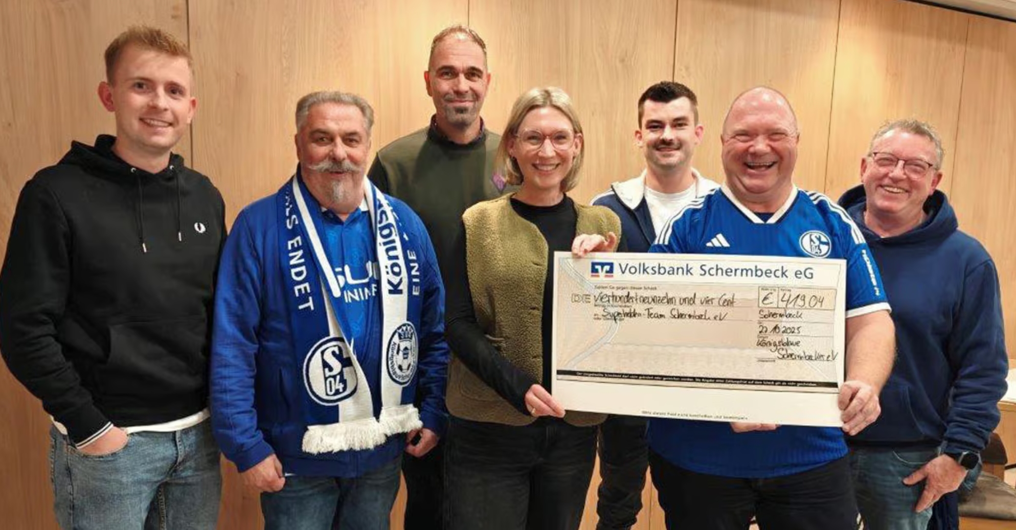 Mit viel Herzblut und gewohnt humorvoll haben die Königsblauen Schermbecker am 27. Oktober den ersten Teil ihrer diesjährigen traditionellen Zeckengeldspende überreicht. Empfänger ist diesmal die Initiative „Superhelden-Team“, die sich durch ihr konsequentes ehrenamtliches Engagement und eine beeindruckende Spendenstruktur auszeichnet. Alle Beiträge der aktuell 154 Mitglieder fließen vollständig in einen Fonds, aus dem jährlich bis zu vier Projekte unterstützt werden.