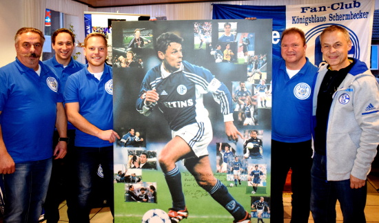 Dafür aber kam Olaf Thon und brachte das versprochene Geburtstagsgeschenk zum 20. vorbei. Er hatte schwer zu schleppen. Denn Thon schenkte dem Verein eine Fotowand – mitten darauf Olaf Thon – eingerahmt von den Eurofightern. Die Wand erhält ihren Ehrenplatz im überdachten Außenbereich von „O“. Autogramme vom Promi waren bei den Kindern natürlich heiß begehrt.