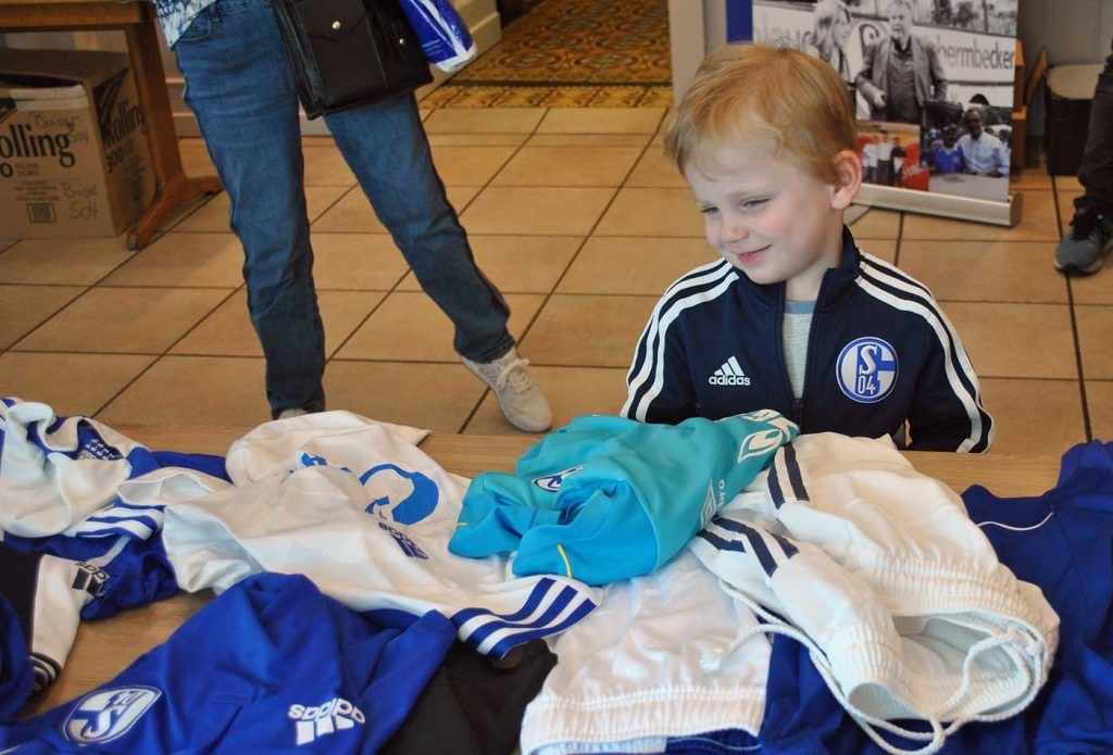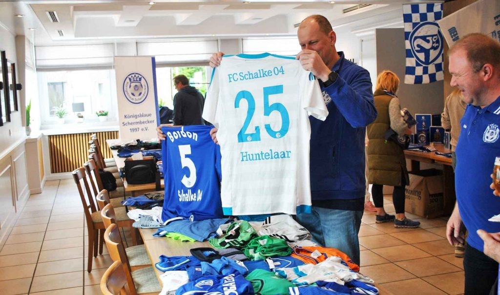 Zwischen 14:00 Uhr und 17:00 Uhr hatten die Mitglieder sowie die breite Öffentlichkeit die Gelegenheit, aus einem reichhaltigen Angebot an Schalke-Utensilien, darunter Trikots, Shirts und zahlreichen weiteren Fanartikeln zu wählen. Zu den absoluten Highlights gehörten die Original-Trikots von Klaas-Jan Huntelaar und Marcelo Bordon. Mehr als 90% der Stücke stammten aus der Sammlung eines einzelnen Spenders.